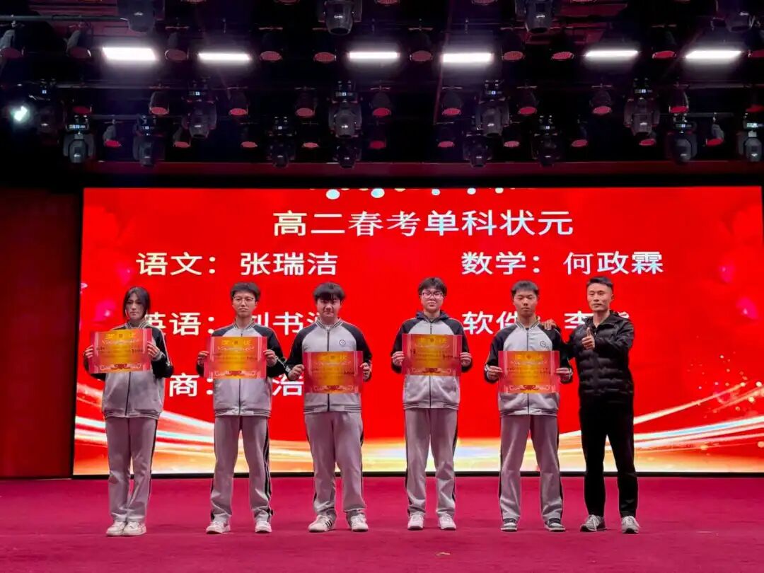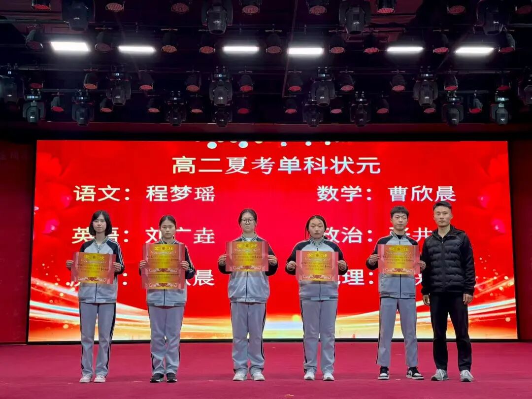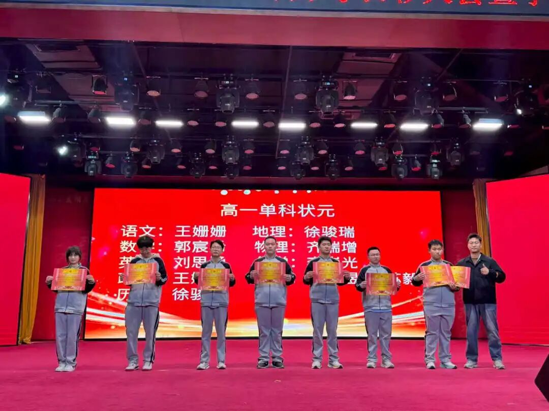 表彰颁奖 教育处权金诺主任、德育处马本雍主任、高三年级崔馨心老师三位老师分别颁发了高一到高三年级的总成绩优秀奖、单科状元和进步之星。 学习先锋—笃学善思“领”风尚 他们是学习态度与精神的典范,他们是课堂上的思考者,是小组讨论中的组织者,是默默耕耘、以身作则的“定盘星”。他们从不满足于现状,以“打破砂锅问到底”的钻劲探索知识边界,用持续的努力诠释着“优秀是一种习惯”,为身边同学树立了最生动的榜样。