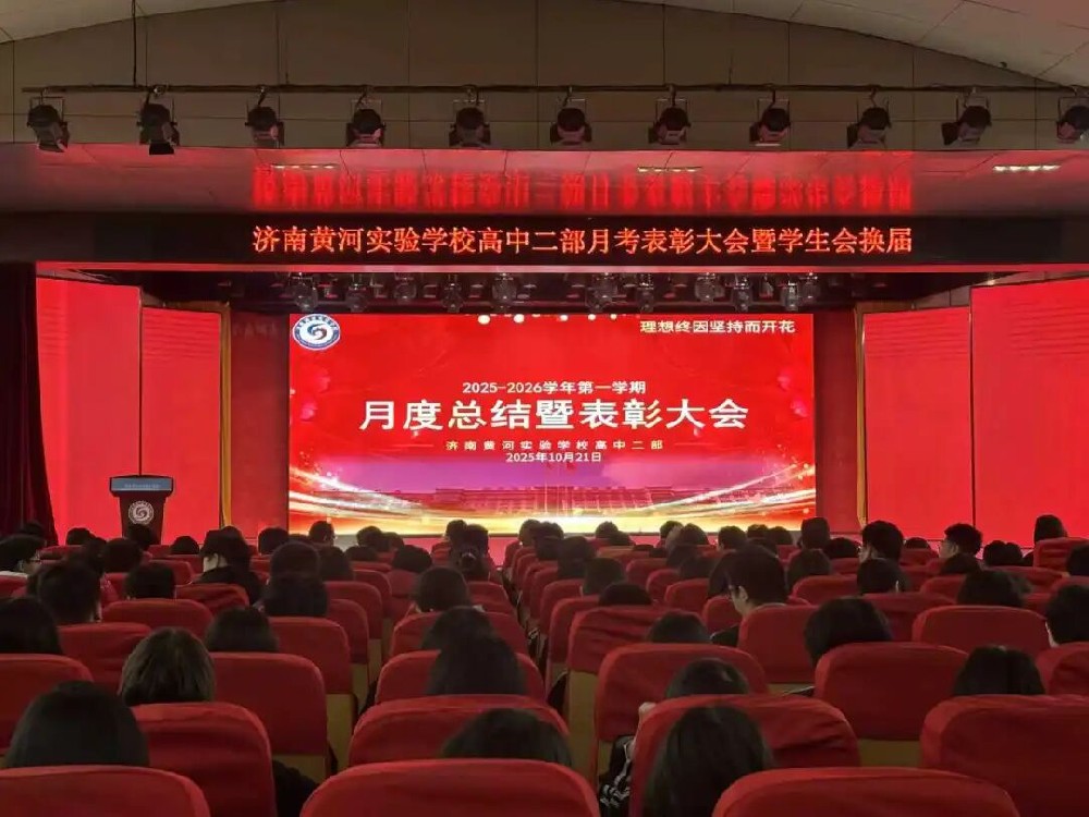 金秋送爽,硕果盈枝。在刚刚结束的月考中,我校高中二部全体同学以饱满的热情、扎实的学识和昂扬的斗志,交出了一份令人满意的答卷。2025年10月22日,我校高中二部在五楼报告厅隆重举行了优秀学生表扬典礼暨学生会换届典礼。全体师生齐聚一堂,共同见证这鼓舞人心的时刻。